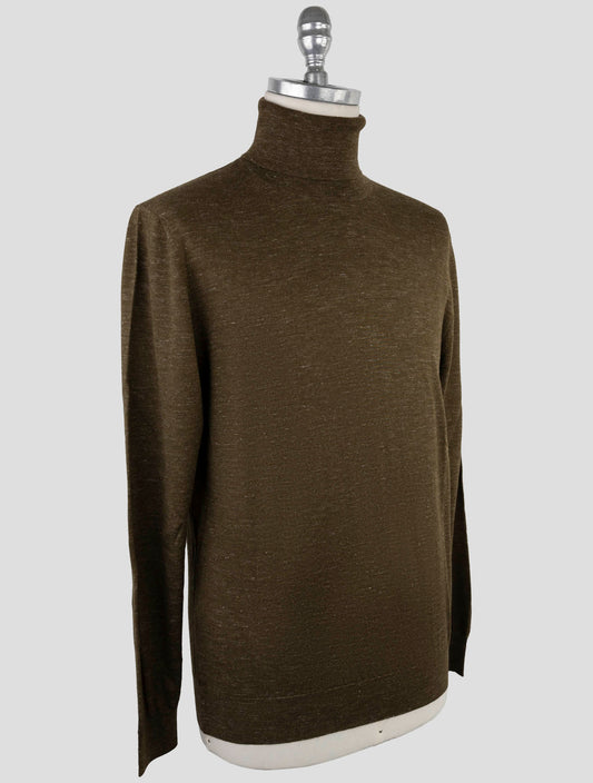 Kiton Luxury Silk Cashmere Linen Turtleneck Sweater Green