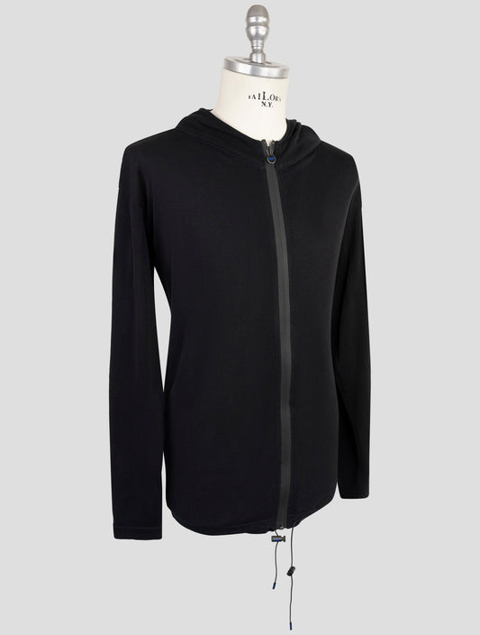 Kiton KNT Black Cotton Full Zip Sweater - Handmade Italian