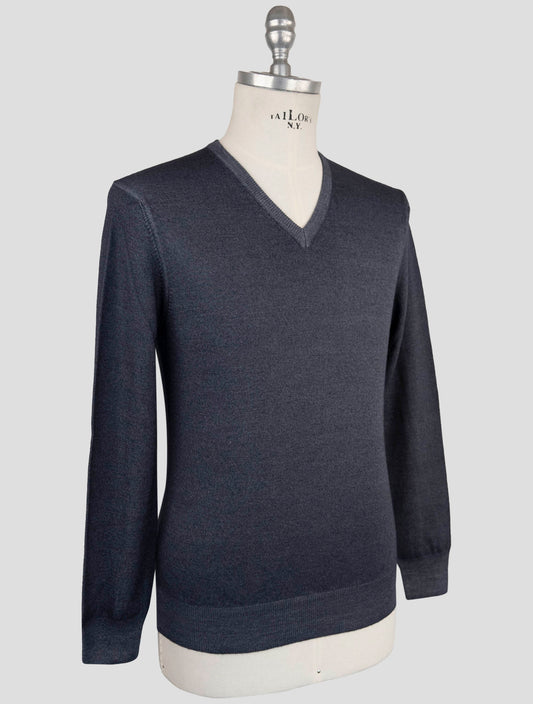Kiton Dark Gray Wool V-Neck Sweater - Handmade Italian Knitwear