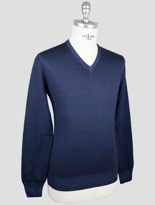 Kiton Cashmere Silk V-Neck Sweater Blue - Handmade Italian