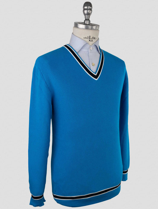 Pull V-Neck en Cachemire et Soie Bleu Kiton
