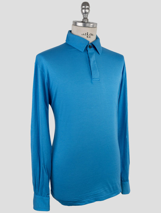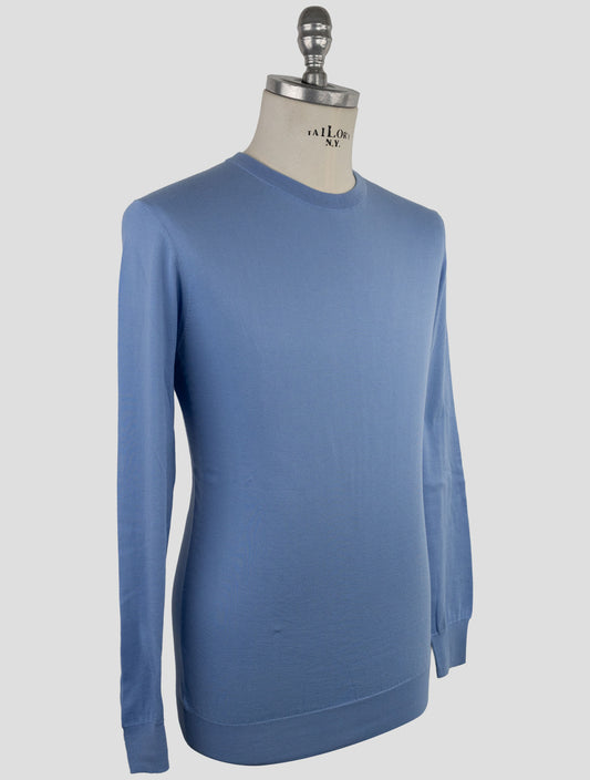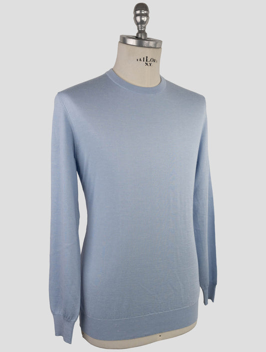 Pull Crewneck en Cachemire et Soie Bleu Kiton