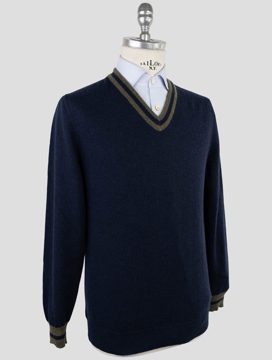 Pull en Cachemire Bleu Vert V-Cou Kiton