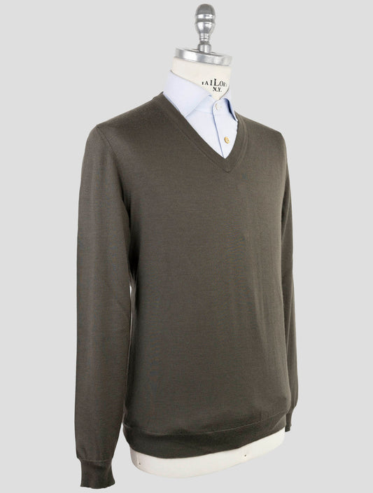 Pull V-Neck en Cachemire et Soie Vert Kiton