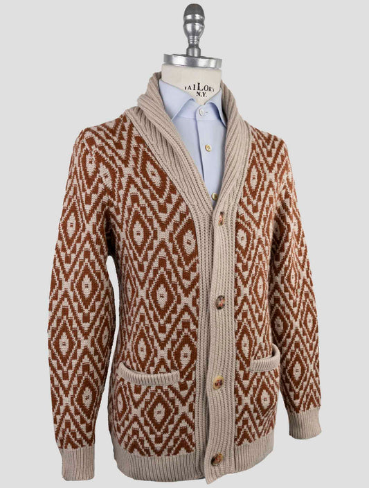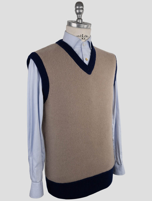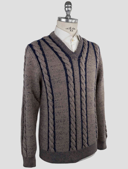 Pull en Cachemire Brun et Bleu V-Cou Kiton