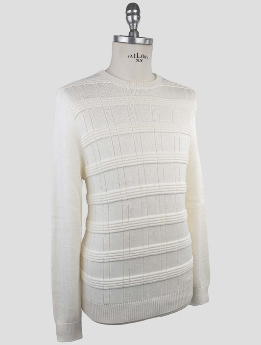 Pull Crewneck en Soie et Coton Blanc Kiton