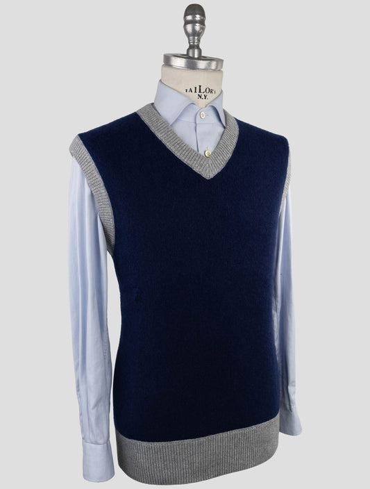 Pull V-Neck en Cachemire Bleu-Gris Kiton