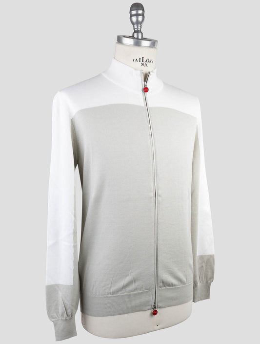 Sweater en Coton Gris et Blanc à Zip Complet Kiton