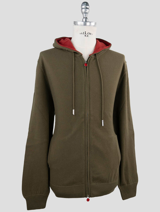 Sweat à Capuche Zippé en Laine Verte Kiton