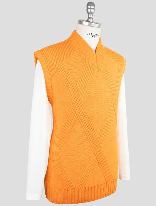 Kiton KNT Orange Virgin Wool Gilet - Handmade Italian Vest