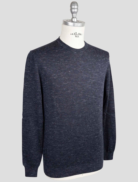 Kiton Blue 14 Micron Wool Crewneck Sweater - Italian Handmade