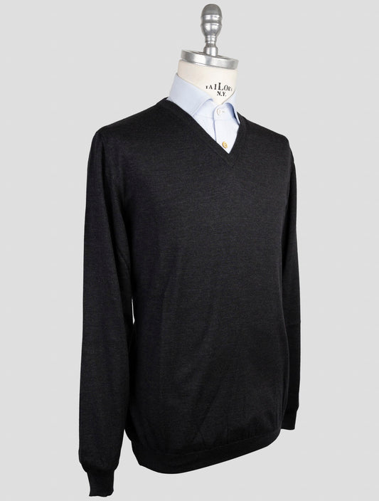 Kiton Handmade Dark Gray Cashmere Silk V-Neck Sweater Men