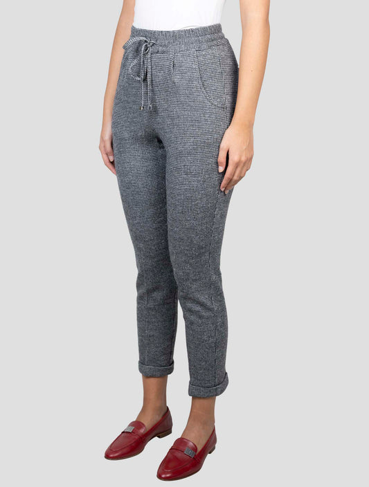 Kiton Women's Cashmere Virgin Wool Pants Gray Houndstooth Pattern