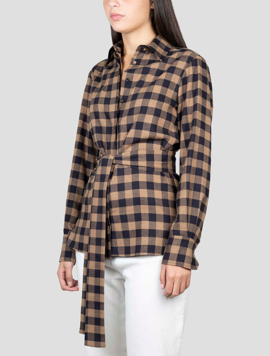 Kiton Women's Handcrafted Brown Silk Shirt - Italian Made 100% Pure Silk