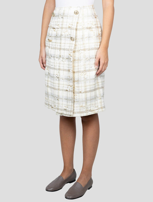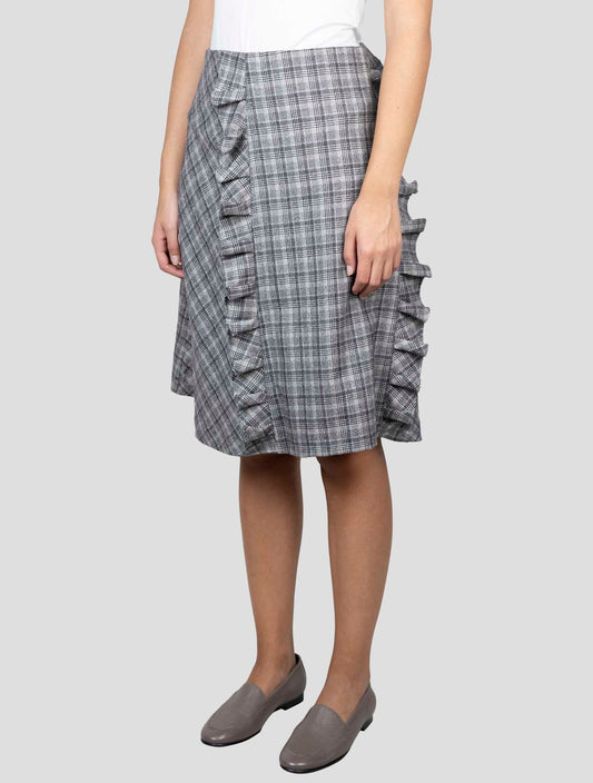 Kiton Donna Gray Cashmere Plaid Skirt - Handmade Italian Luxury