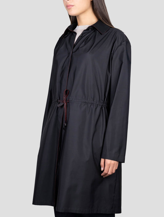 Kiton Women's Black Silk Overcoat - Handmade Italian Regular Fit