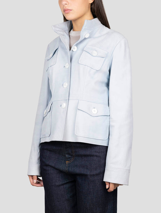 Kiton Premium Handmade Light Blue Leather Coat - Italian Women's
