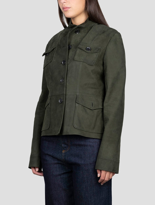 Kiton Women's Green Leather Coat - Italian Handmade Premium