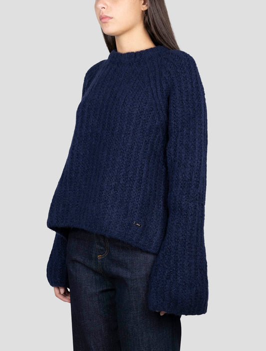 Kiton Luxury Cashmere Silk Crewneck Sweater Blue Handmade Italy