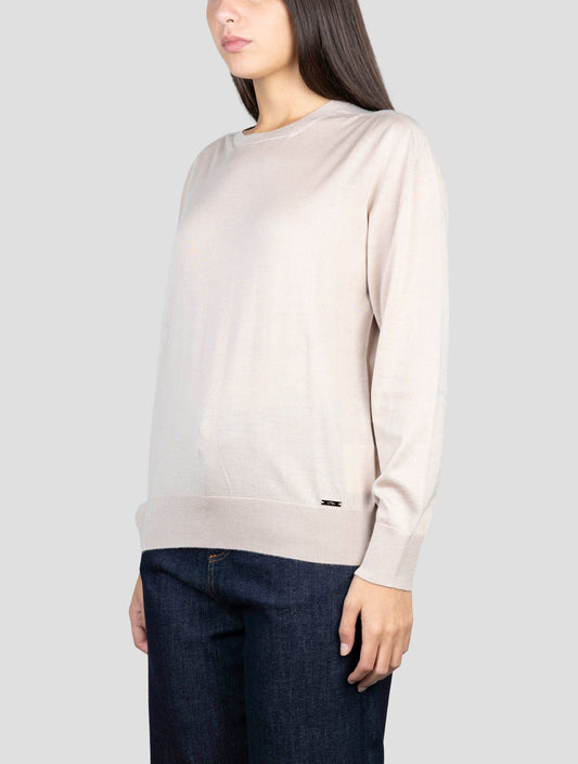 Kiton Luxury Cashmere Silk Crewneck Sweater Women's - Beige
