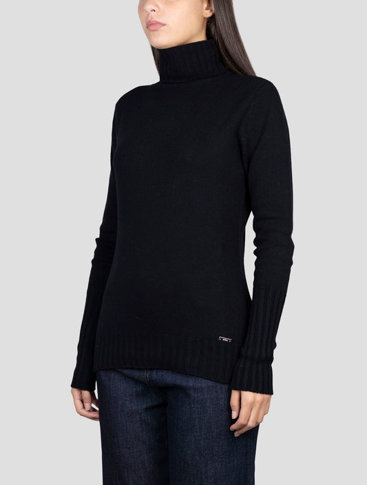 Kiton Women's 100% Cashmere Black Turtleneck Sweater - Italian