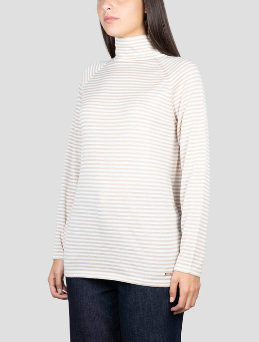 Kiton Premium Cashmere Silk Striped Half Neck Sweater Brown White