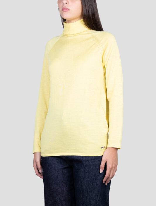 Kiton Yellow Cashmere Silk Turtleneck Sweater Women's Italian