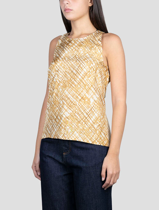 Kiton Pure Silk Blouse Brown White Pattern - Handmade Italian