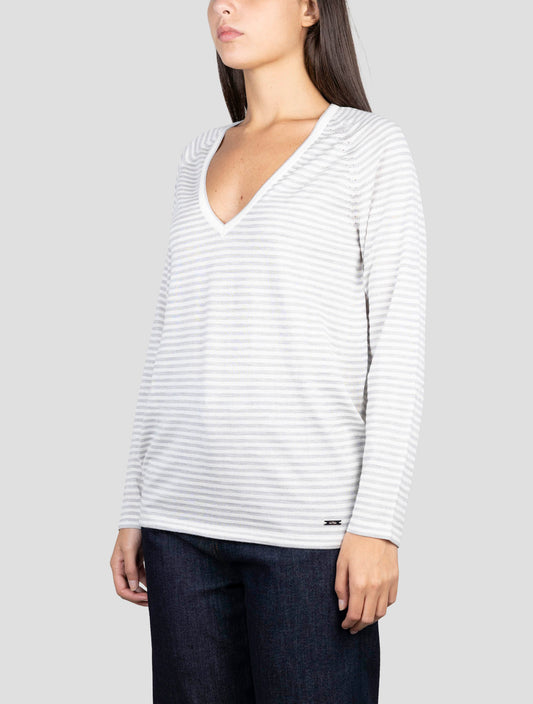 Kiton Premium Cashmere Silk V-Neck Sweater Gray White Striped