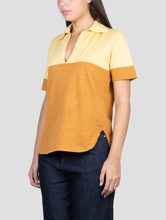 Kiton Handmade Linen Cotton Polo Brown Yellow Italian Women's