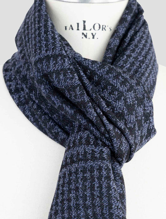 Kiton Handmade Blue Wool Scarf Pied de Poule Pattern 50x190cm