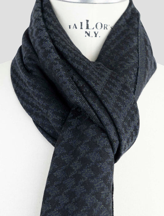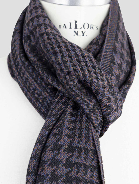 Kiton Premium Wool Houndstooth Scarf Multicolor 190cm Italian Made