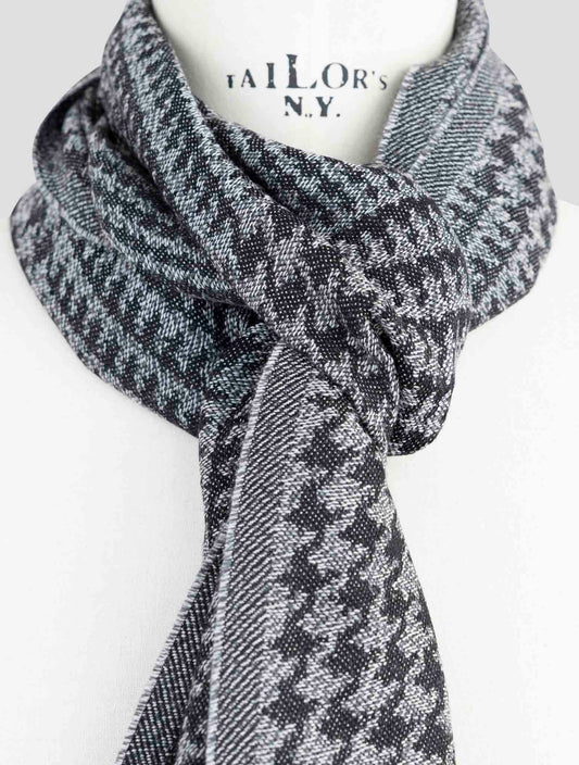 Kiton Premium Wool Scarf Black Gray Houndstooth Italian