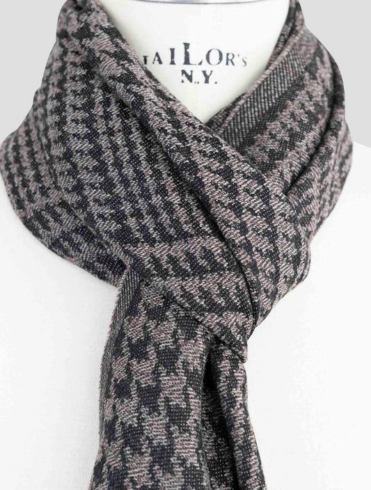 Kiton Premium Wool Scarf Black Gray Pied de Poule Pattern