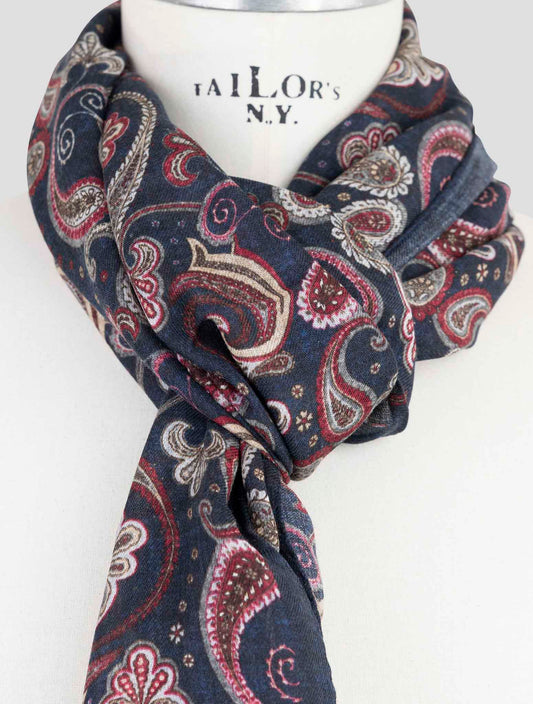 Kiton Modal Cashmere Paisley Scarf Italian Multicolor 70x200cm
