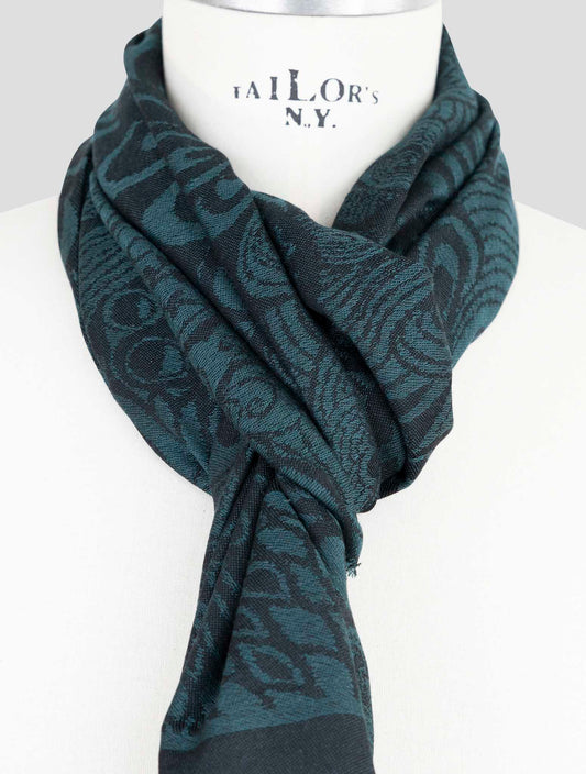 Kiton Handmade Wool Silk Cashmere Floral Scarf Blue Green 65x200cm