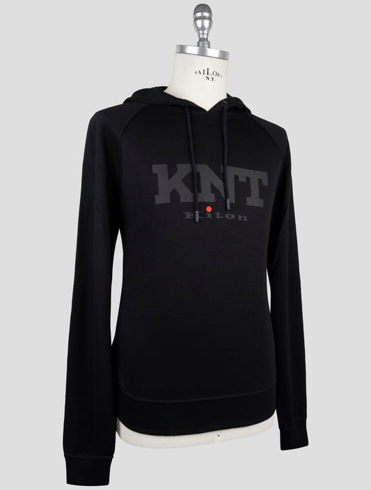 Kiton KNT Black Viscose Hoodie Sweater - Italian Designer Men's