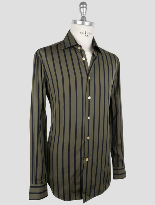Kiton Green Blue Striped Cotton Dress Shirt - Handcrafted Naples