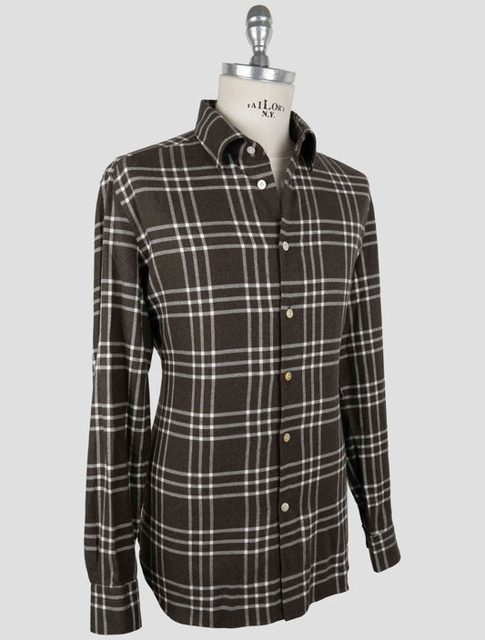 Kiton Brown Plaid Cotton Shirt - Italian Handmade Dress Shirt