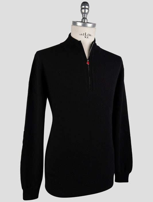 Kiton Black Cashmere Half-Zip Polo Sweater - Made in Italy