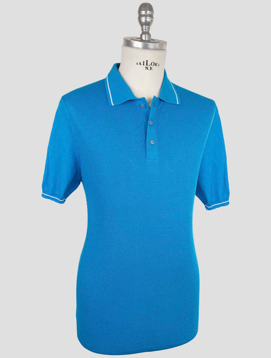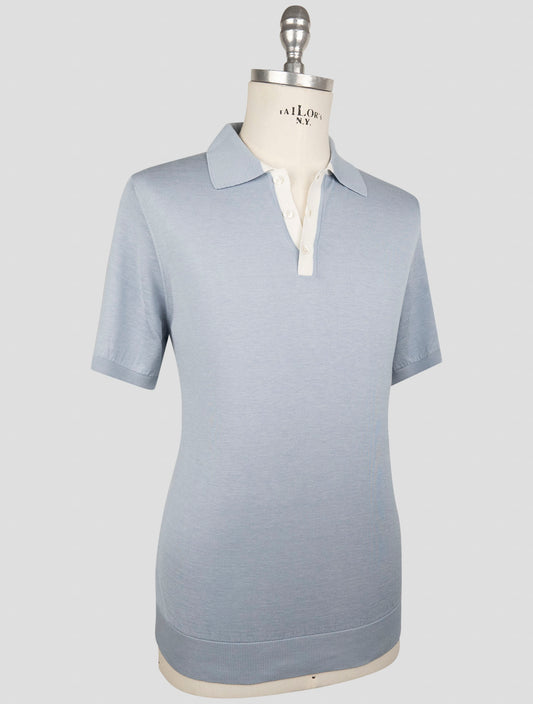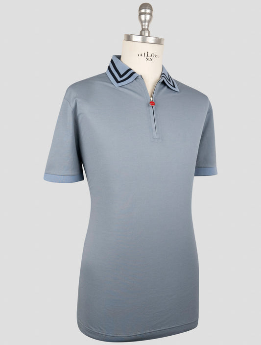 Поло из шелка и хлопка Kiton светло-голубого цвета