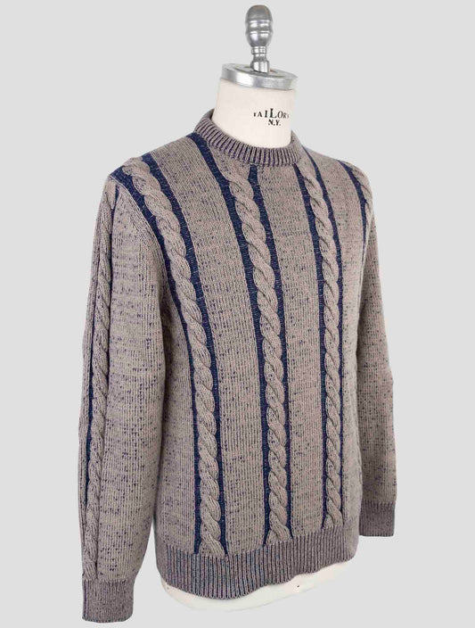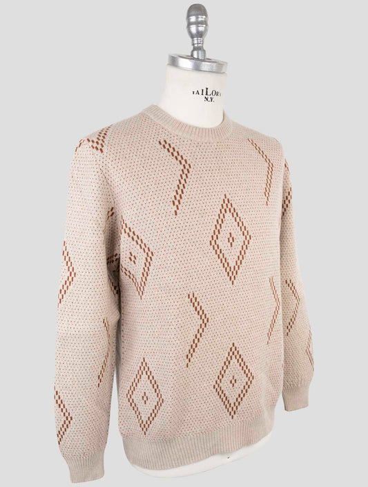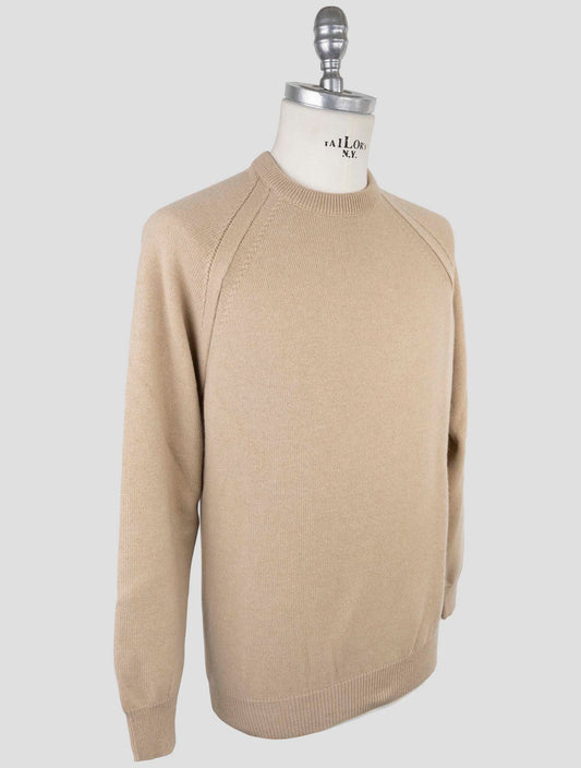 Бежевый шерстяной свитер Kiton с круглым вырезом