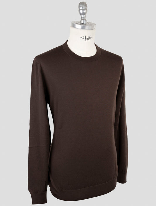 Коричневый шерстяной свитер с круглым вырезом Kiton