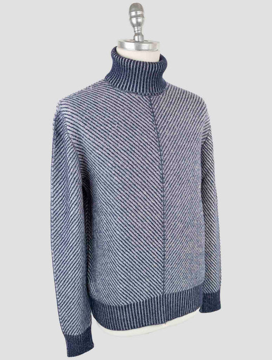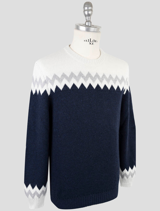 Свитер Kiton из кашемира с круглым вырезом в синем и белом цветах