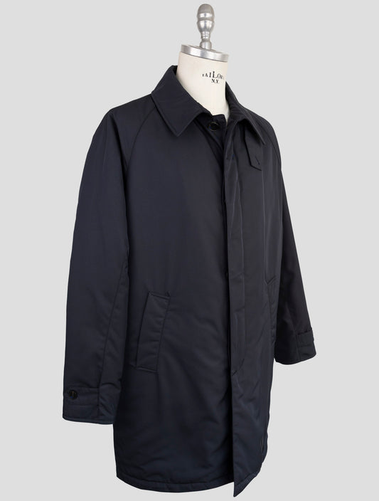 Kiton KNT Blue Water-Resistant Polyester Overcoat Handmade Italy