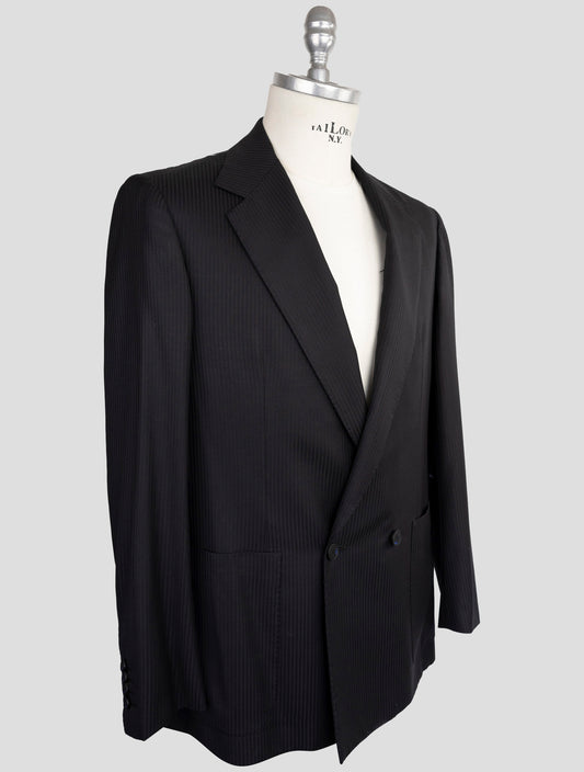 Kiton KNT Black Pinstripe Virgin Wool Double Breasted Suit