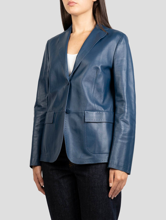 Kiton Premium Blue Leather Blazer Women - Italian Handmade