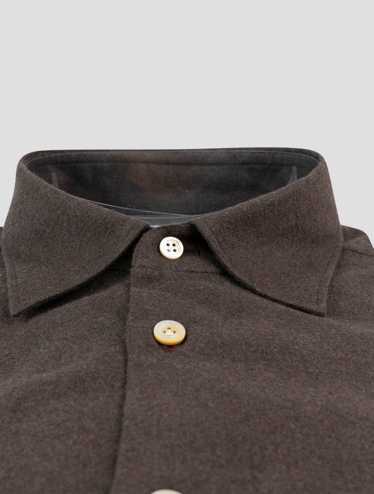 Kiton Brown Textured Cotton Dress Shirt Italian Handmade Premium