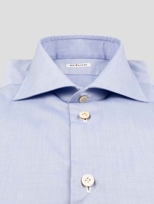 Kiton Light Blue Cotton Shirt - Handmade Italian Regular Fit