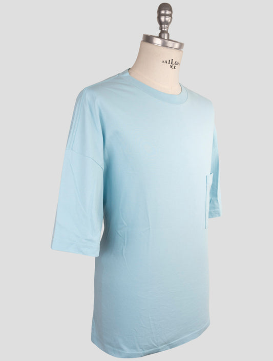 Kiton KNT Premium Italian Cotton T-Shirt Light Blue Crewneck